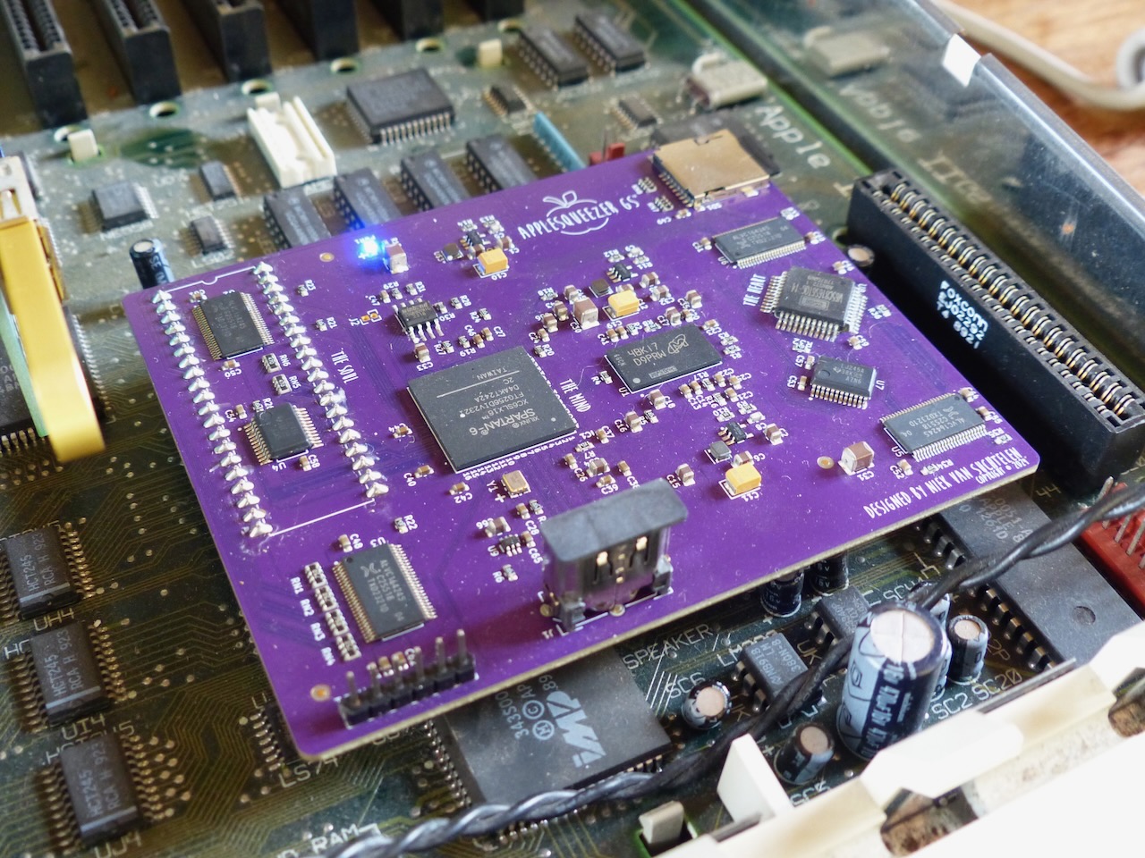 AppleSqueezer v2 SD Card Driver (c) 2026 by Brutal Deluxe __________________________________________________________________ What can I do with the SD card port of my AppleSquezer v2 accelerator for the Apple IIgs? Perhaps one could set up four ProDOS partitions on a SD card and have them mounted into the Apple IIgs System Software. How to set up the SD Card____________________________________________ 1/ Upgrade your AppleSqueezer v2 card to Core v13. Get it from the Applesqueezer website. This version of the Core of the AppleSqueezer accelerator is mandatory to use if one wants to benefit from the best experience with the SD card port. Use the Control Panel AppleSqueezer to upgrade to Core v13. Then shutdown your computer. 2/ Install the four-partition disk image onto your SD card. Download the four-partition disk image for your SD card on our website. Then use your preferred way to install the disk image onto your SD card. Let's consider your modern computer mounts it on /dev/disk4: (sudo) diskutil umount /dev/disk4 (sudo) dd if=as4p32mb.bin of=/dev/disk4 bs=512 Install the SD card into the port of the AppleSqueezer v2 accelerator card. Then, turn on your Apple IIgs computer. If you are a Windows user, download Etcher at https://etcher.balena.io and perform the following steps: 1. Select Image: Click Flash from file and select your as4p32mb.bin, 2. Select Target: Click Select target and pick the drive that corresponds to your disk, 3. Flash: Click Flash!. 3/ Install the Apple IIgs GS/OS driver. Download the disk image with the installer from our website. Insert the disk and double-click the Installer program. Install the script. Reboot. You are now ready to use the SD card port of your AppleSqueezer v2 accelerator. FAQ________________________________________________________________ Q/ Can I boot from the SD card? A/ Not yet. One step at a time. Q/ Can I mount disk images like other disk interfaces (CFFA, Booti, etc.)? A/ Not yet. One step at a time. Q/ What kind of partition model do you use? A/ This is a standard MS-DOS partition map. Note that the partition ID used for the ProDOS partitions is $20, a value that is reserved but not used. Q/ Can I use other partitions than a ProDOS one? A/ Yes, for sure. You have two options: - the SD card has no partition map but a file system as from block 0, - the SD card has up to four partitions with or without file systems on it. As the driver recognizes FAT12, FAT16, FAT32, ProDOS, and HFS partitions, you can do whichever combination with the card. Q/ Can I read, write, and format? A/ Yes, for sure. Q/ Is it a stable driver? A/ Yes, despite being still a beta release as there are some changes to apply to the partition recognition. For instance, if you have a partition map for four partitions and use only one, the Finder will tell you "4 - 1 active partition" times for image conflict. You can eject the other partitions. Q/ Is it a stable driver? A/ Yes, no SD card was hurt during writing and testing. Q/ Does it work with all SD card brands? A/ At least with two: Sandisk, and Nokia. Minimum system requirements_________________________________________ The program requires at least 10KB of free memory. It has been tested on Apple IIgs ROM 01 & ROM 3 versions. It is compatible with System 6.x and above. Limited warranty___________________________________________________ Many of the designations used by manufacturers and sellers to distinguish their products are claimed as trademarks. Brutal Deluxe assumes no responsability for damages resulting from the use of the program. In no event will Brutal Deluxe be liable for any loss or profit or any other commercial damage, including but not limited to special, indicental, consequential, or other damages. Contacts__________________________________________________________ AppleSqueezer Contact______________________________________________________ Get the latest core of Niek van Suchtelen's AppleSqueezer at https://www.applesqueezer.com/ Commercial Contact_________________________________________________________ For any questions regarding a disk update or anything commercial nature, please visit our website at https://www.brutaldeluxe.fr/ Technical Contact___________________________________________________________ If you want to get some technical information or if you have problems using this software, please contact the authors of the program at info@brutaldeluxe.fr